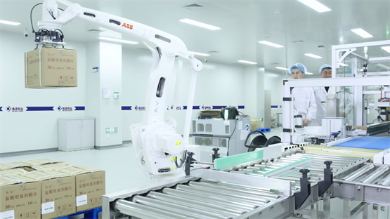 2. 原料药和制剂生产综合基地项目:基于盐酸二甲双胍年产1000吨的规模化生产需求,该项目引入1条自动包装线,借助机械臂精准抓取、出料自动装袋、打包等模块化设计,实现从灌装到成品出库的全流程闭环操作。