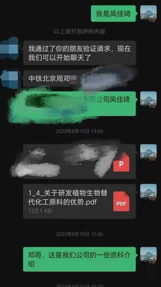 2021年,其公司与遵义医学院合作开展板蓝根提取技术研发。2022年,项目落地遵义市凤冈县。“2023年办理环评期间,我结识了邓某,其谎称自己是中铁北京局在职工作人员,骗取了我对其身份的信任,于2023年11月加入我公司合作。”凤佳琦说,从此自己公司才进入了“噩梦”!